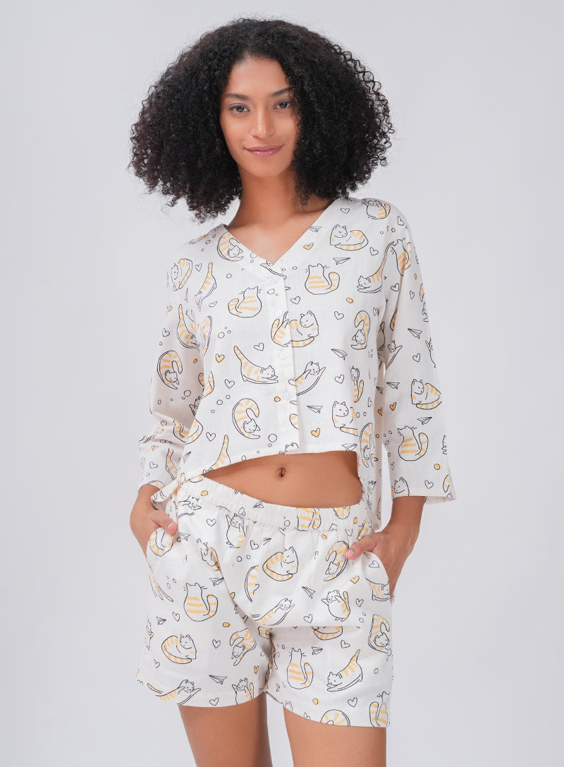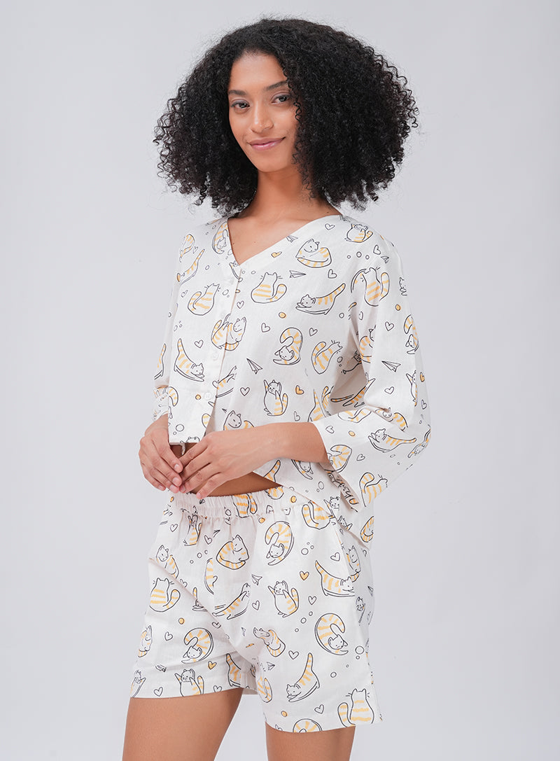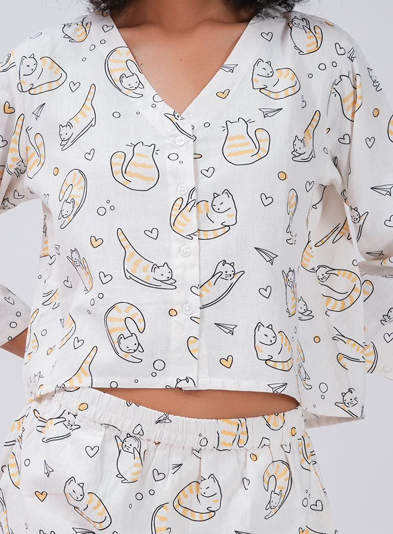 COLOR – WHITE WITH ALL-OVER CAT PRINTS